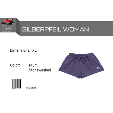F2 Retro Silberpfeil Shorts Plum Stonewashed Damen Sweatshorts - Größe wählbar
