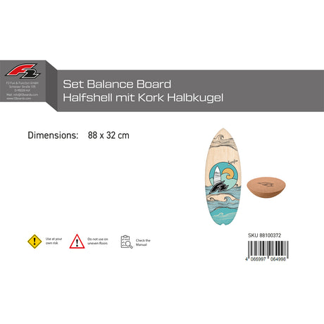 F2 Set Balance Board Surfer 87x32cm + Halbkugel und Korkrolle