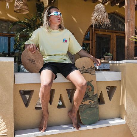 F2 Set Kork Balance Board Surf Flat Shape 84x31cm + Korkrolle