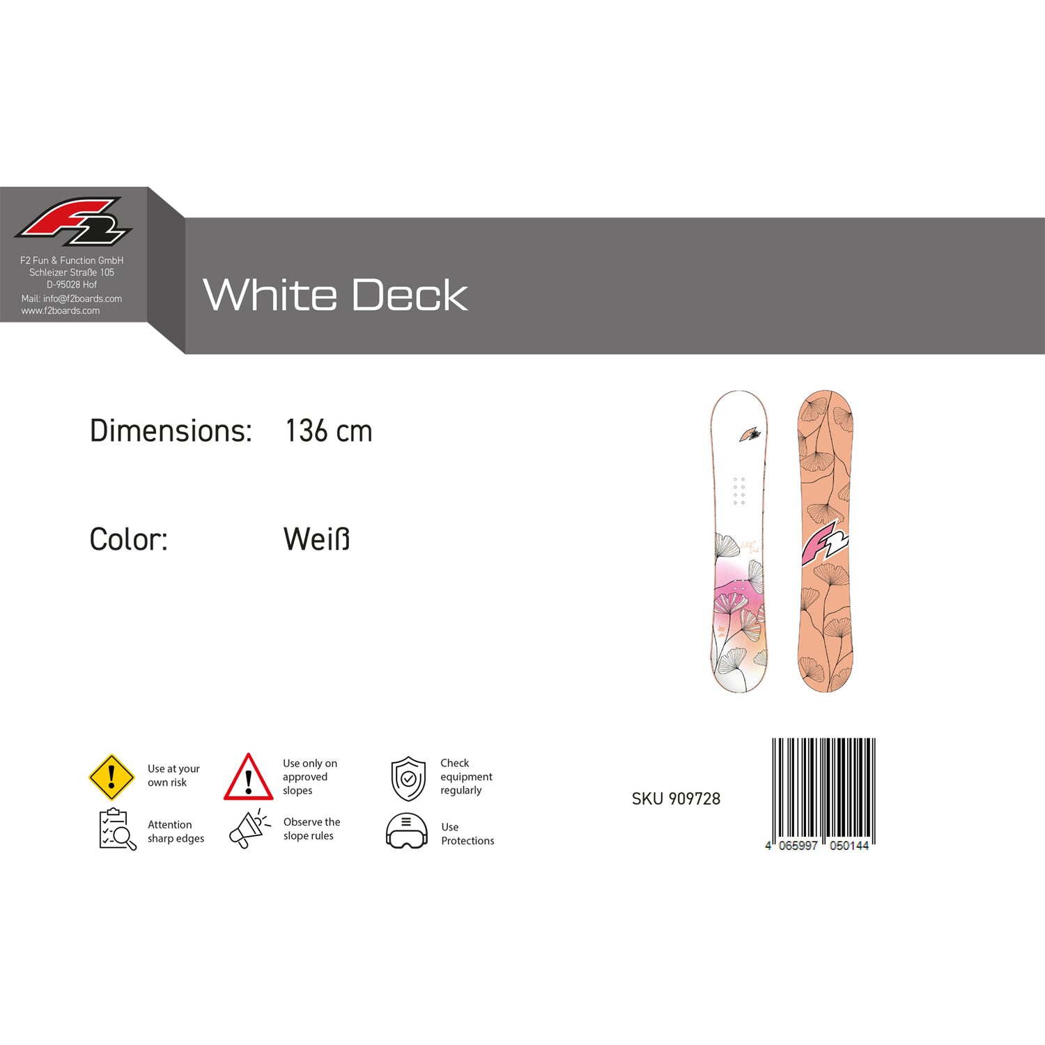 F2 Damen Snowboard White Deck Freeride Größe wählbar Weiß 2025