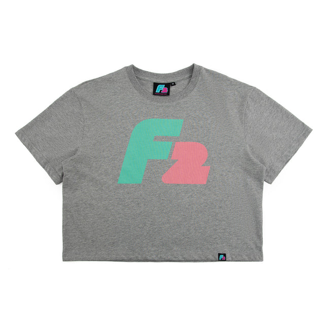 F2 Retro T-Shirt Strato Ash Damen Crop Top Tshirt Grau - Größe wählbar