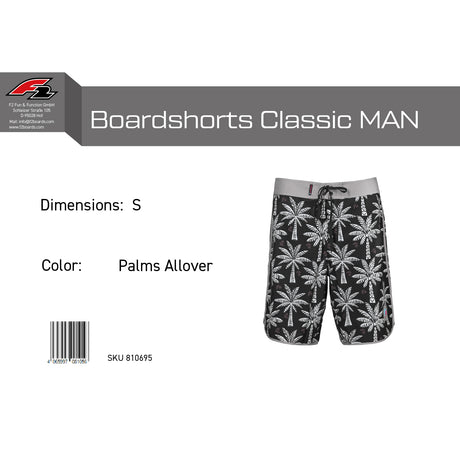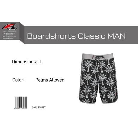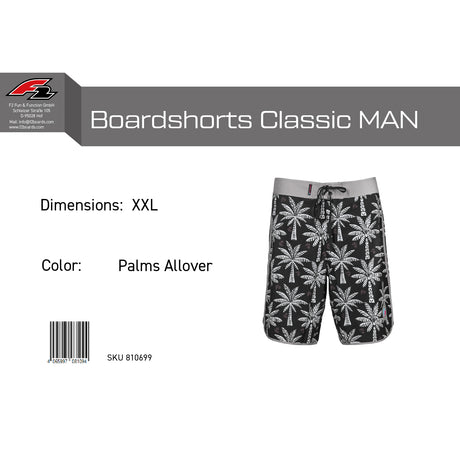 F2 Retro Boardshorts Classic Palms Allover Badeshorts Schwarz - Größe wählbar