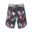 F2 Retro Boardshorts Classic 90´s Allover Badeshorts Schwarz - Größe wählbar