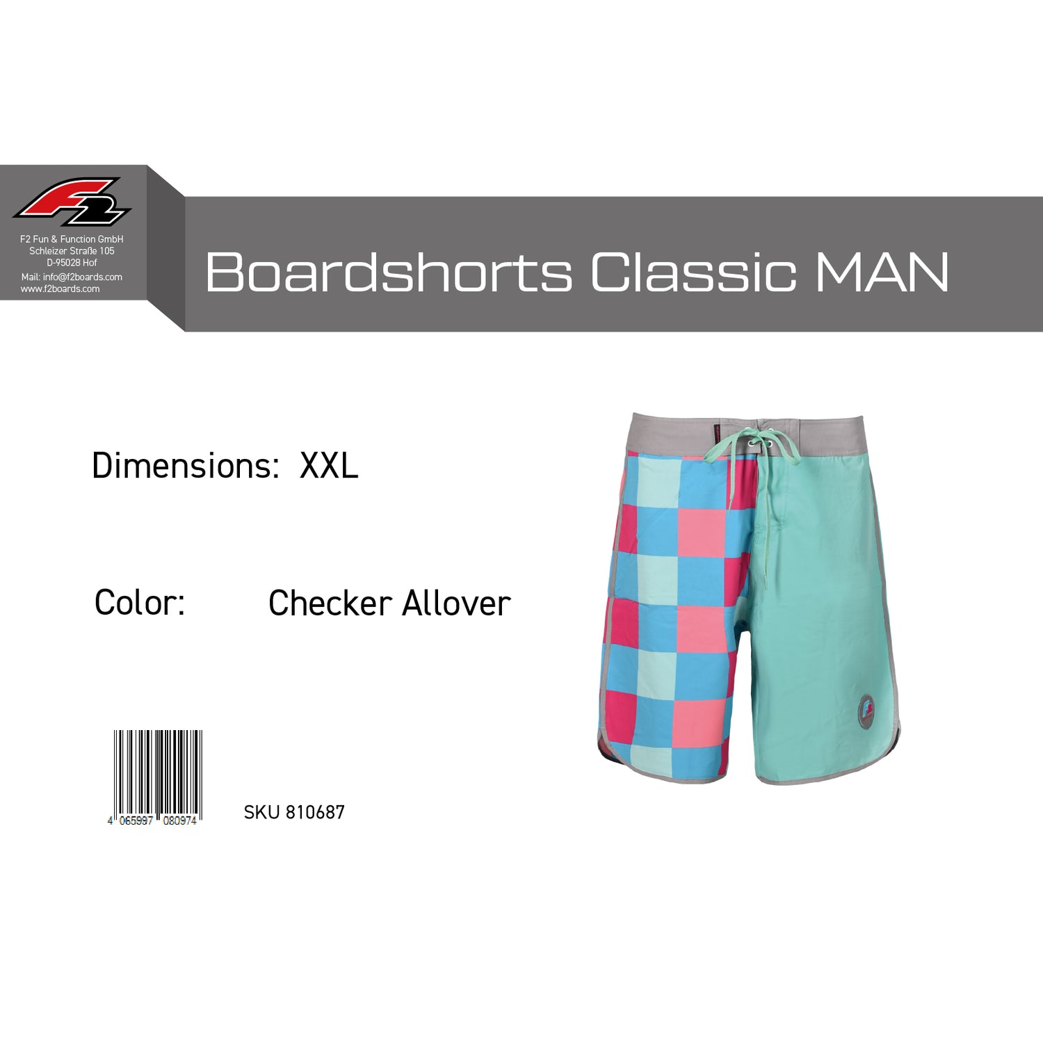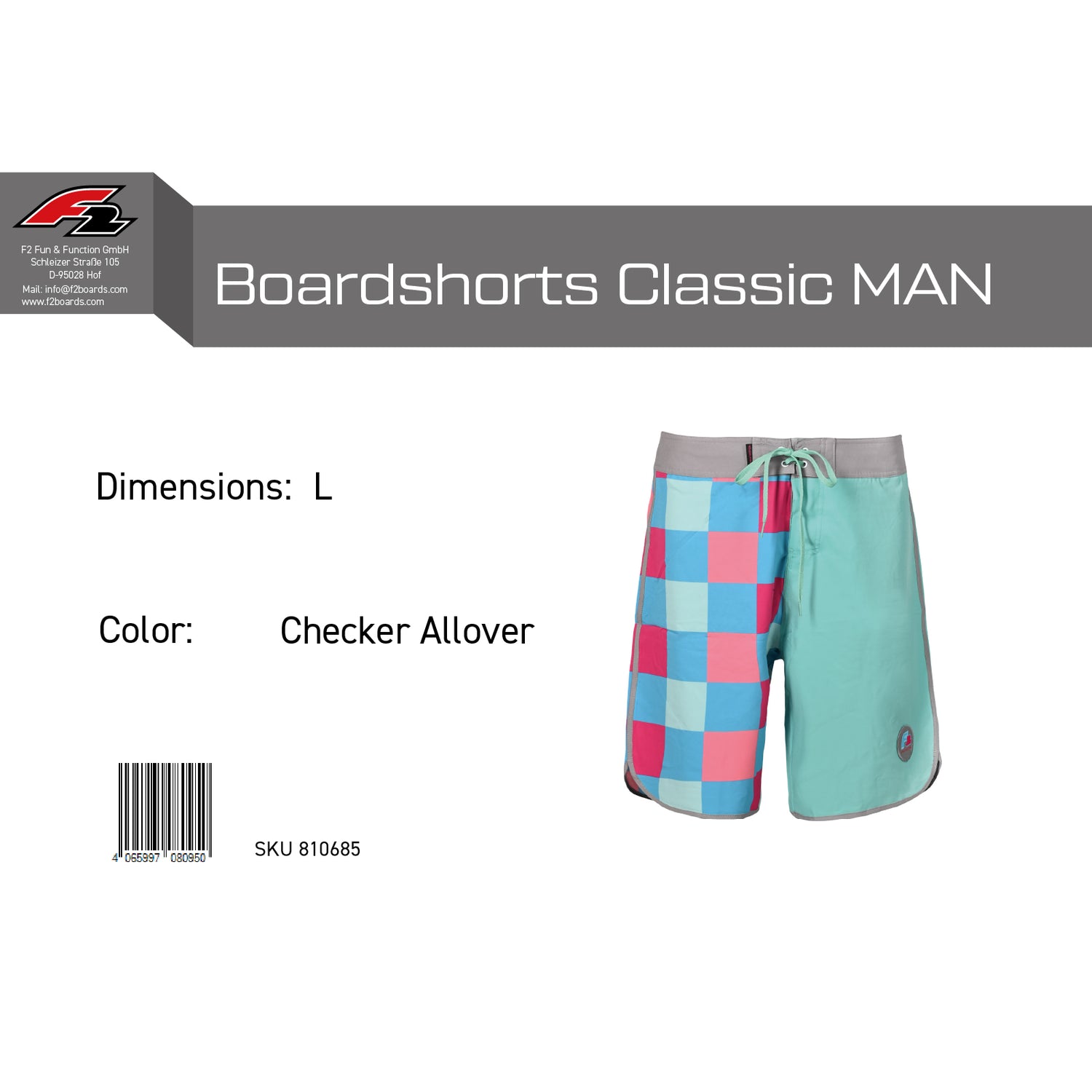 F2 Retro Boardshorts Classic Checker Oceangreen Badeshorts - Größe wählbar