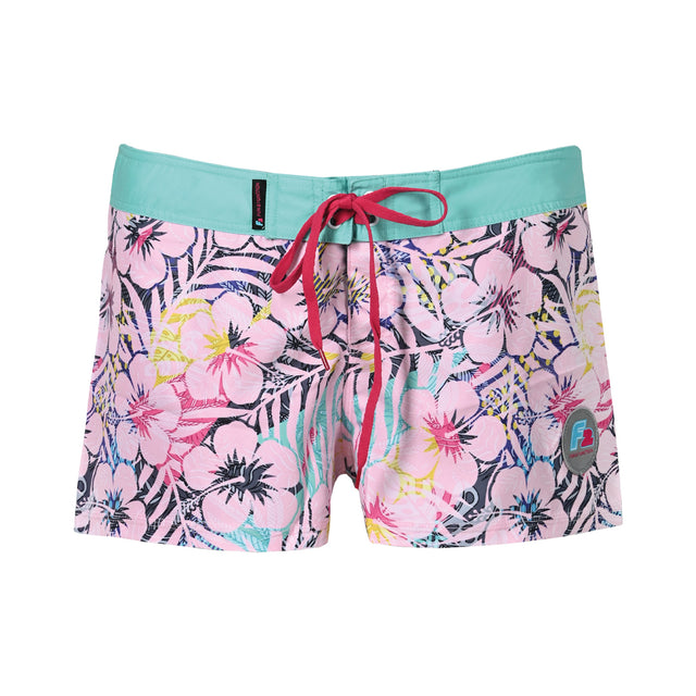 F2 Retro Boardshorts Classic Hibiskus Damen Badeshorts Kurz - Größe wählbar