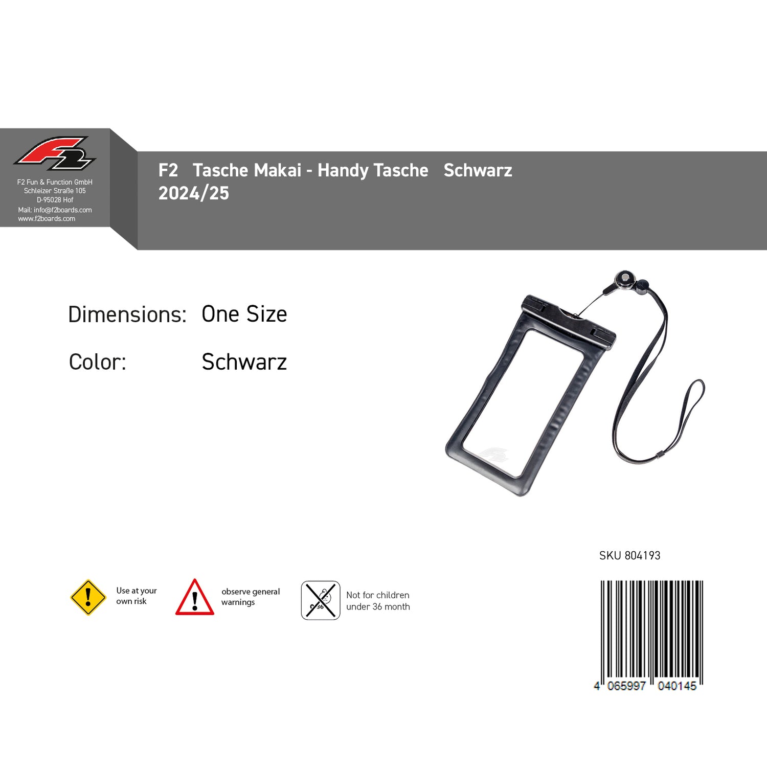 Die F2 Handytasche Makai 2024/25 ist die ideale Lösung, um Ihr Mobiltelefon sicher und trocken zu halten, egal wo Sie sind. Diese wasserdichte Handyhülle ist in den Farben Schwarz, Pink und Weiß erhältlich und bietet umfassenden Schutz für Ihr Gerät. Die Tasche schwimmt im Wasser, sodass Sie sich keine Sorgen machen müssen, Ihr Telefon zu verlieren, wenn es ins Wasser fällt. Mit der abnehmbaren Trageschlaufe können Sie die Hülle bequem um den Hals tragen oder an Ihrem Gepäck befestigen. Ein kleines Logo-Print rundet das stylische Design ab. Mit einer Größe von 11,5 x 20,5 x 1,5 cm und einem Gewicht von nur 40 g ist diese Tasche leicht und einfach zu handhaben.