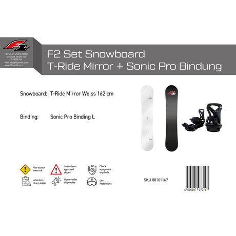 F2 Set Snowboard T-Ride Mirror Weiss + Sonic Pro Bindung L - Komplettset Größe wählbar