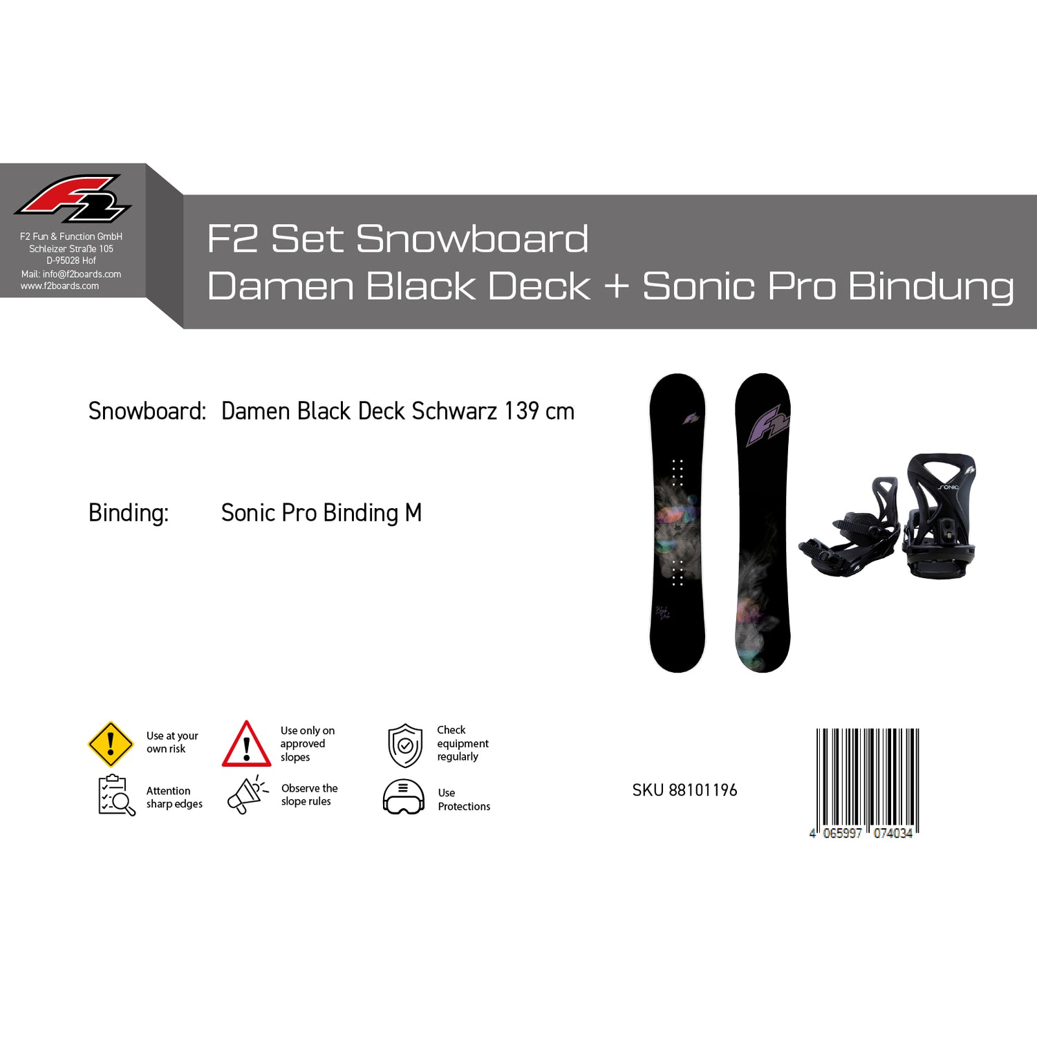 F2 Set Damen Snowboard Blackdeck + Sonic Pro Bindung M - Komplettset Größe wählbar