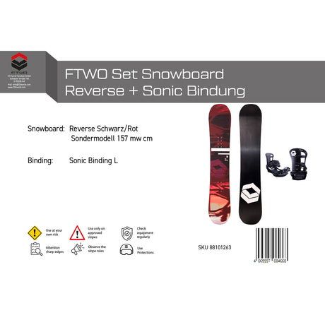 FTWO Set Snowboard Reverse Schwarz/Rot + Sonic Bindung - Sale - Komplettset Größen wählbar