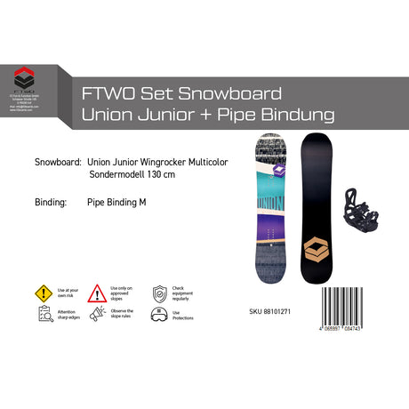 FTWO Set Junior Snowboard Union Wingrocker + Pipe Bindung - Sale - Komplettset Größen wählbar