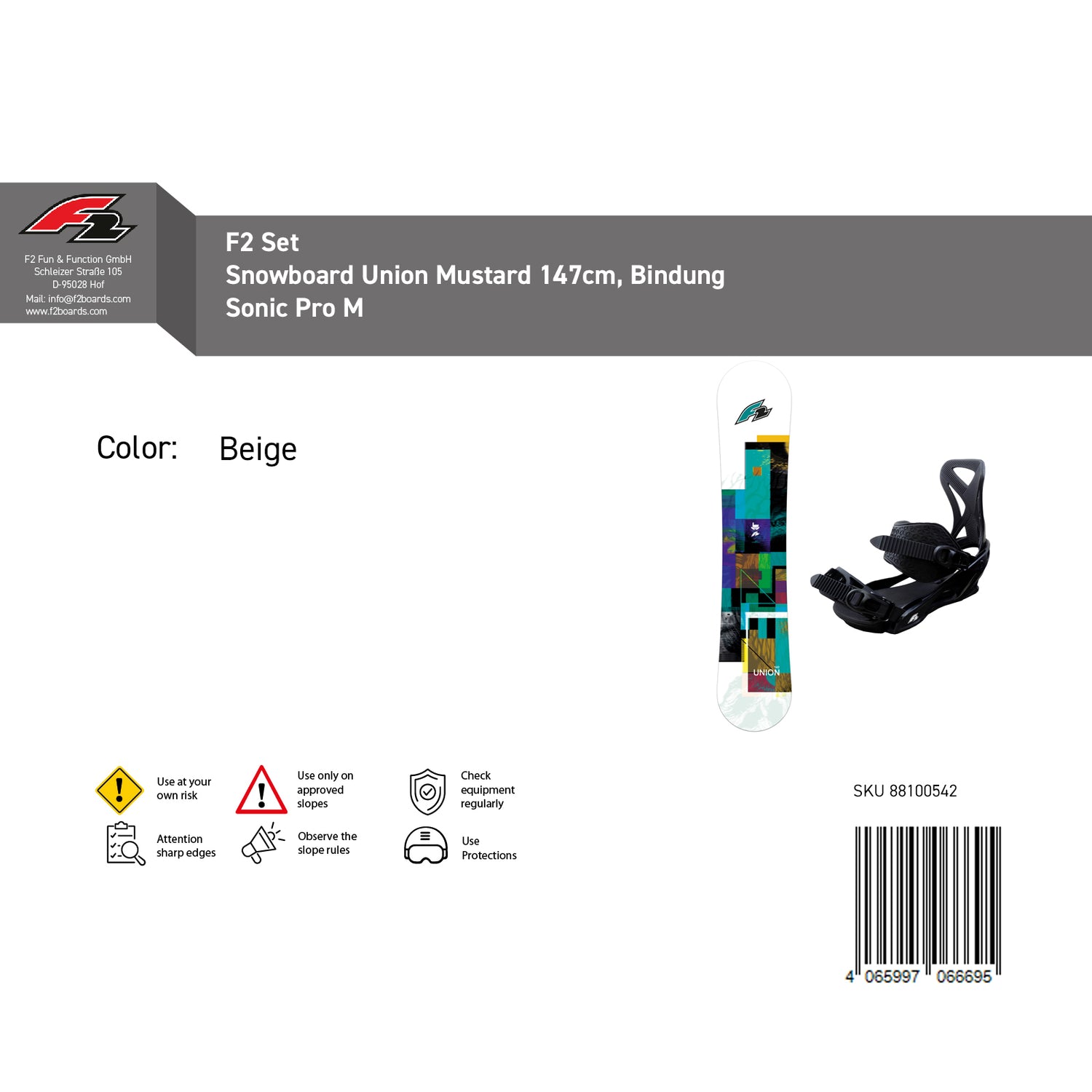 F2 Set Herren Snowboard Union Mustard mit Bindung Sonic Pro Komplettset Größe wählbar