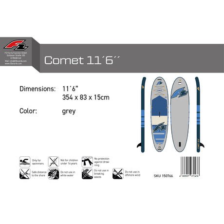 F2 SUP Stand Up Paddle Board Comet - Board only 354cm 11,6 Grau