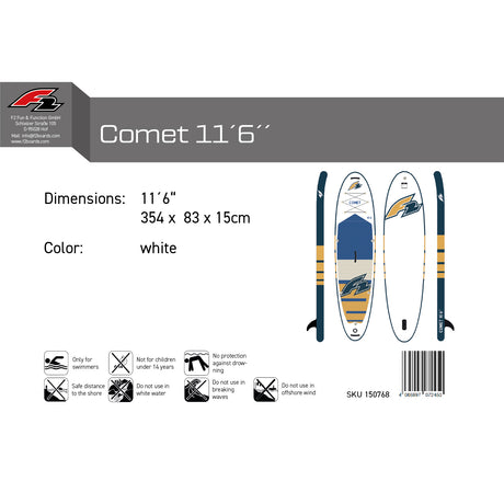 F2 SUP Stand Up Paddle Board Comet - Board only 354cm 11,6 Weiss