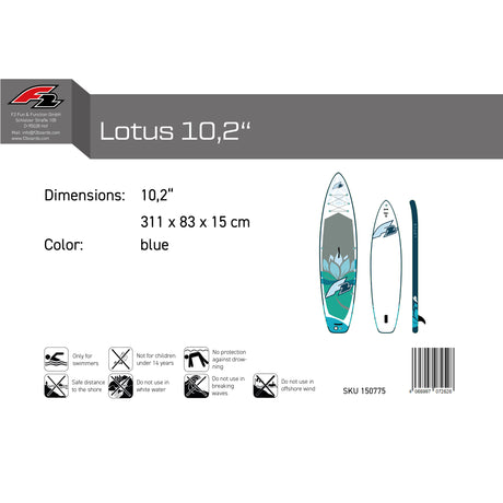 F2 SUP Stand Up Paddle Board Lotus Damen - Board only 311cm 10,2 Blau