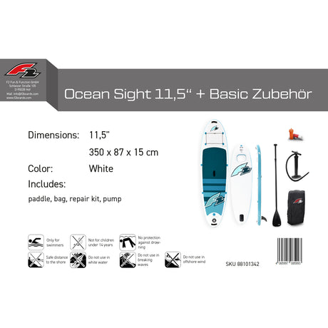 F2 Set Stand Up Paddle Board Ocean Sight Weiss 11,5 + Basic Zubehör Paket