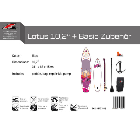 F2 Set Damen Stand Up Paddle Board Lotus Lila 10,2 + Basic Zubehör Paket