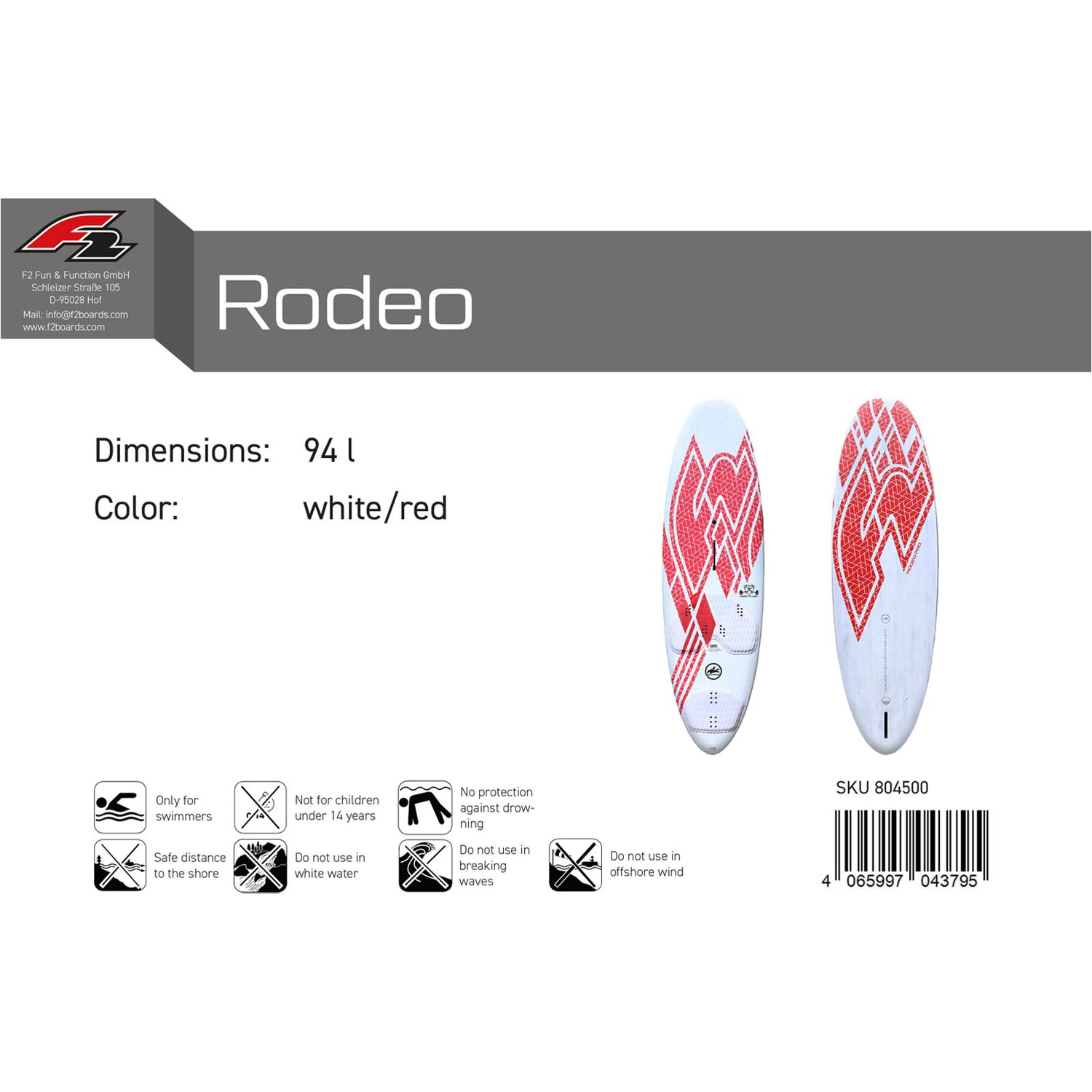 F2 Windsurfboard Rodeo Pro 80-104L Größe wählbar Weiss/Rot 2024/25