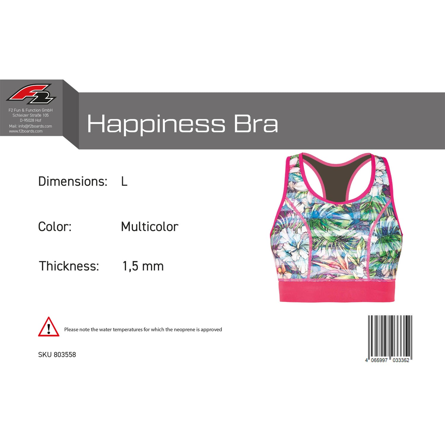 F2 Damen Neopren Oberteil Happiness Bra 1,5 mm Größe wählbar Multicolor 2024/25