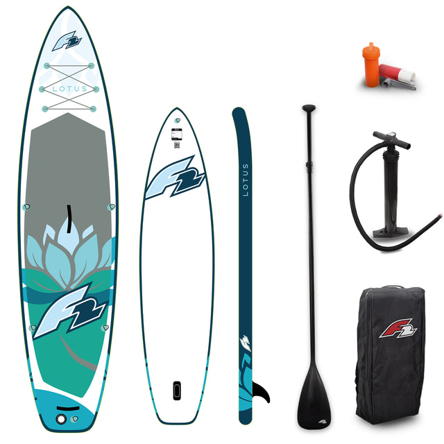 F2 Set Damen Stand Up Paddle Board Lotus Blau 10,6 + Basic Zubehör Paket